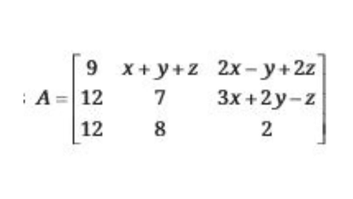 Tentukan nilai x, y, dan z jika matriks A adalah matriks simetris: